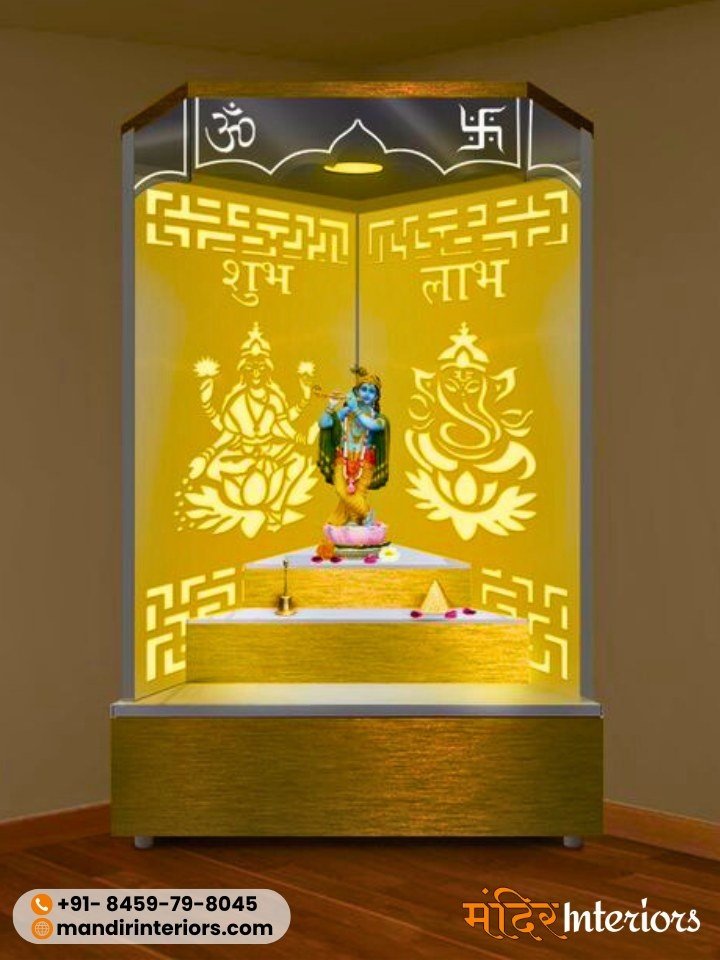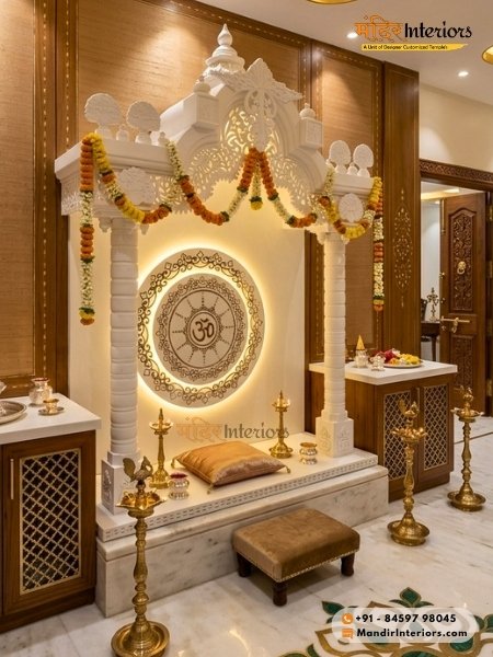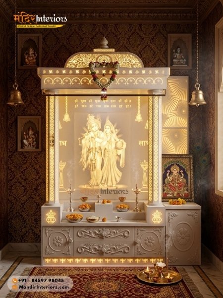 • Direction: The North-East (Ishan Kon) is the most auspicious direction for a Mandir. If that is not possible, the East or North walls are the next best options.