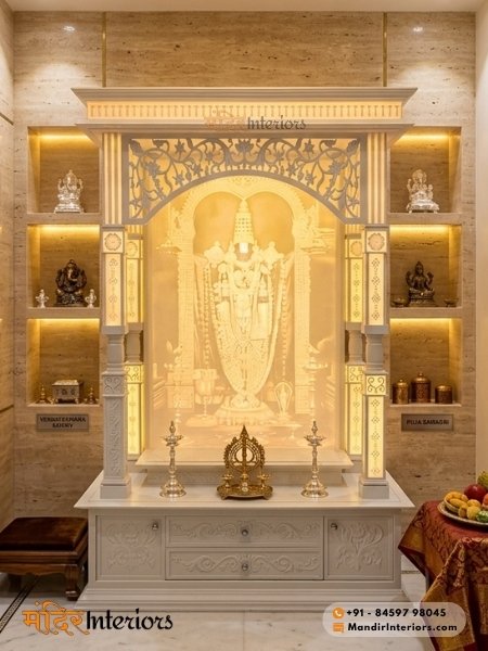 Collection of customized Big Size Corian Marble Mandir's & Pooja Rooms in 2026