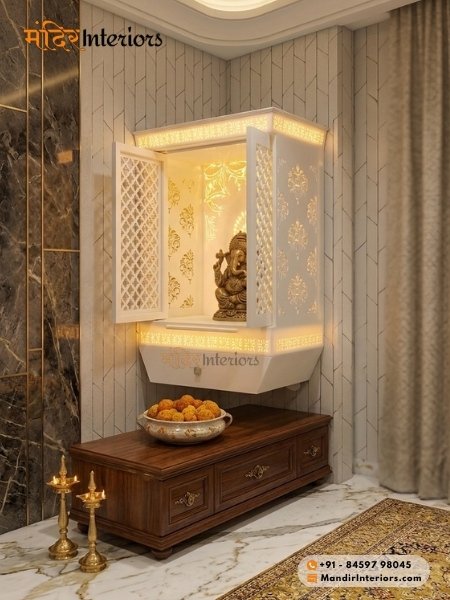 Wall Mounted Corian Mandir Designs