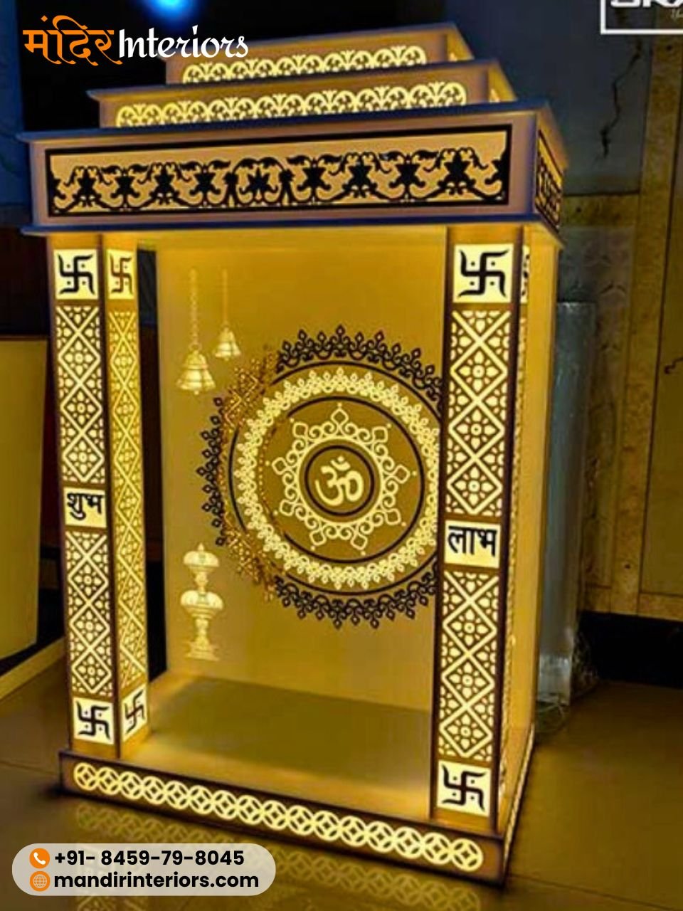 Mandir Interiors Offers latest and exclusive collection of Customized and designer Corian Mandir for Home and office and shop manufactured by Mandir Interiors At Affordable Price Because We Have Our Own Manufacturing Unit With Latest Technology CNC Machines.